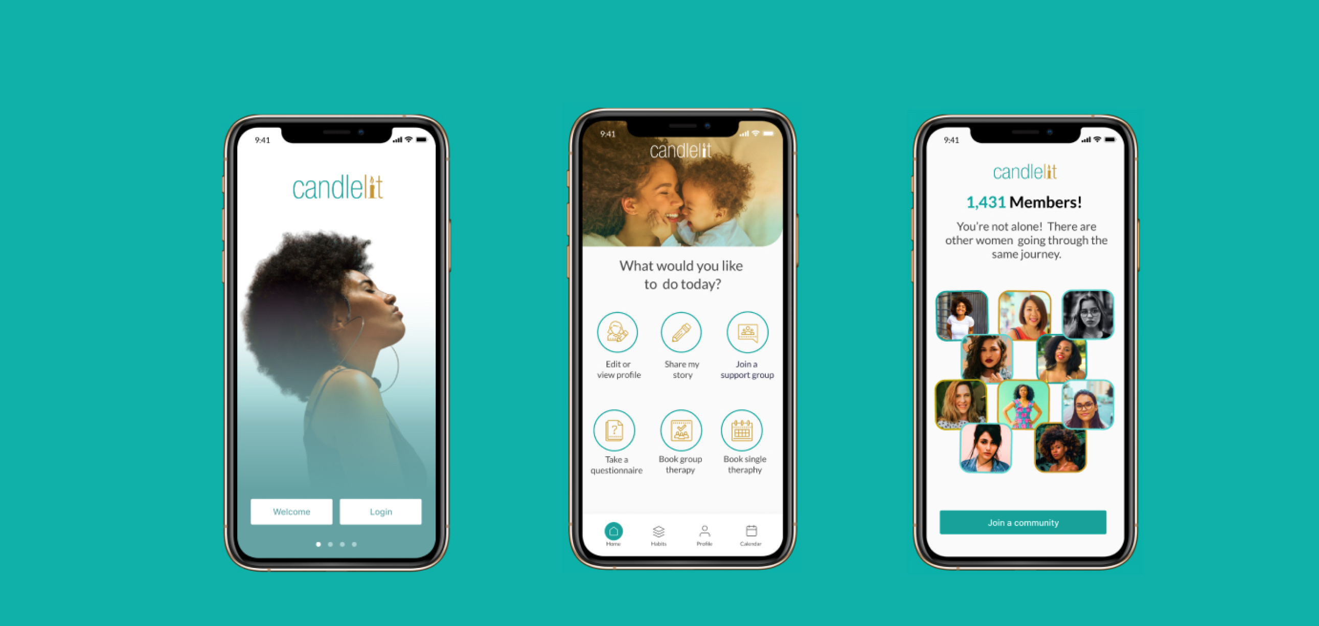 The Candlelit Therapy app provides virtual perinatal and mental health support for mothers of color that are at-risk of stress, depression or anxiety while trying to conceive, pregnant or after labor. The goal of the app is to establish a virtual support community to connect all mothers of color dealing with the same challenges so the user can know they are not alone. To also ensure that navigational options in the UI are easy for the user to find.